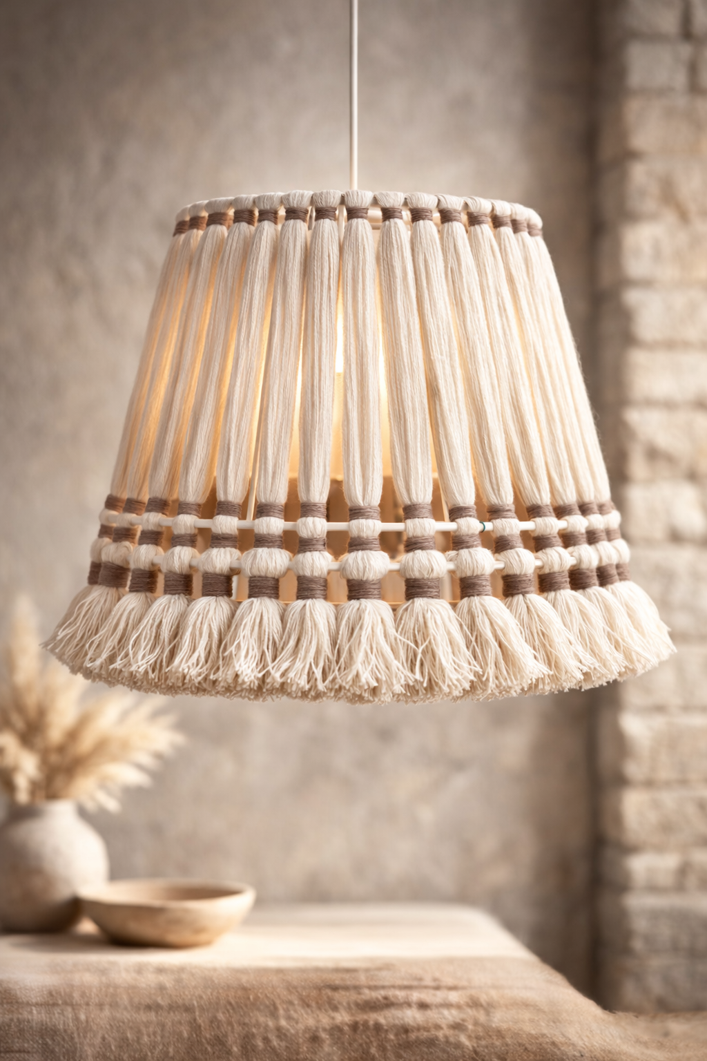 Every fibre carries the subtle irregularities that only true craftsmanship can create. The hand-spun yarns hold movement. The hand-dyed tones reveal nuanced variations. When illuminated, these organic materials diffuse light into a warm, enveloping glow — transforming illumination into experience.